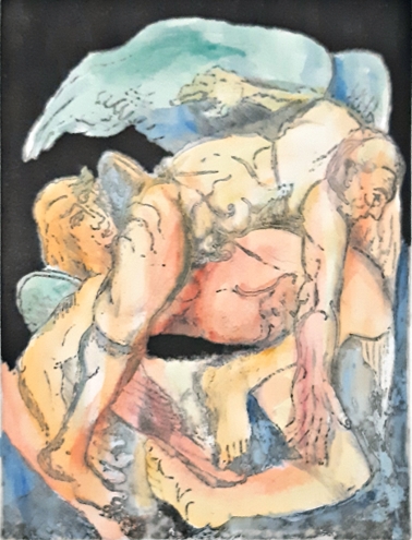 Anche la letteratura, nel duttile mondo dell’Artista, può diventare fonte personale di ispirazione: ce lo dimostra la tela in cui i due personaggi danteschi, Paolo e Francesca, attraverso aeree spirali e vortici di colore che avvolgono i loro corpi, esibiti nella loro indifesa nudità, sembrano scivolare ineluttabilmente verso quel fatale destino di amore e di morte, di eros e thanatos che li ha resi immortali.